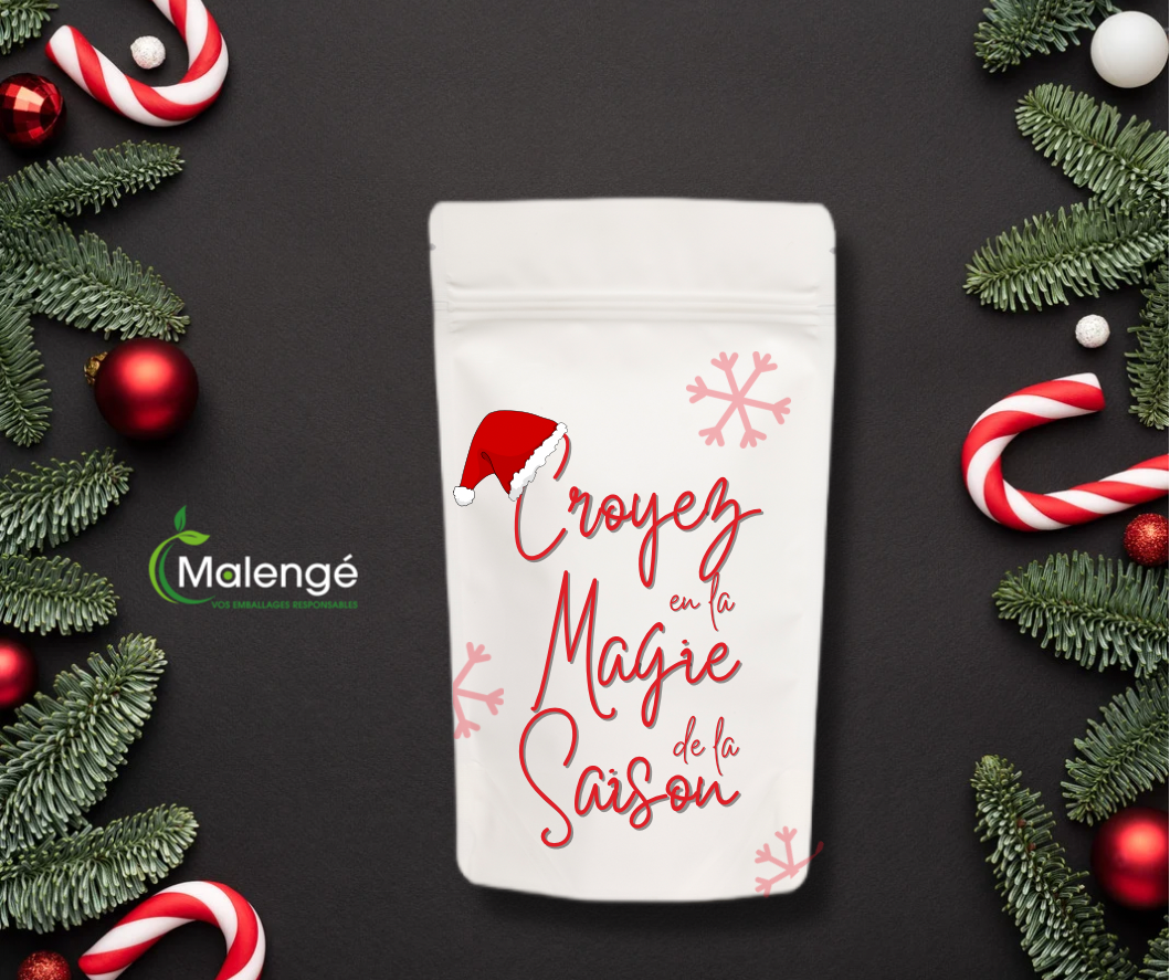 Nos sachets de Noël sont adaptés à tous vos produits, nous proposons différentes matières d’emballage pour tous types de cadeaux. Par exemple, nous conseillons un sachet kraft brun, avec fenêtre ou avec une couche d’aluminium pour une protection optimale. Le kraft brun donne un côté authentique à vos produits de Noël. Mais si vous souhaitez visualiser le produit, nous avons une gamme d’emballages avec fenêtre transparente, recyclable également. Sur les sachets, vous retrouverez le côté hermétique avec le zip qui permettra une consommation fractionnée de vos produits de Noël.